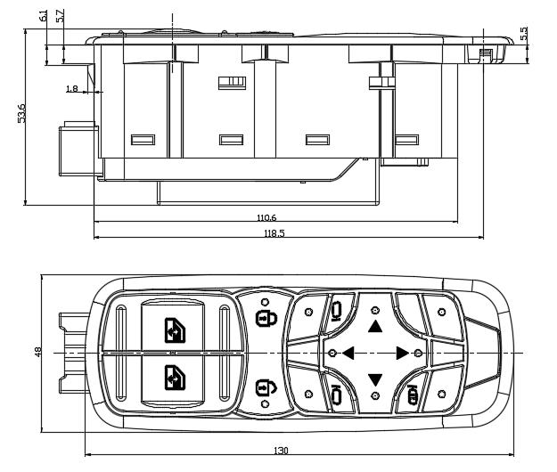L.后視鏡選擇及加熱按鍵導通行程:1.8mm;
