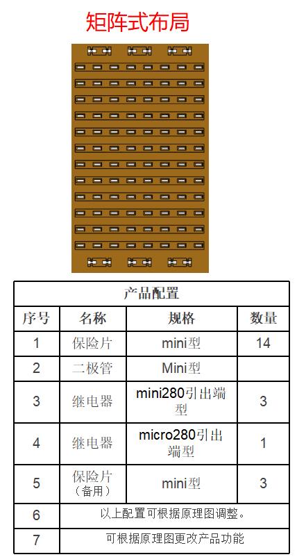 H. 矩陣式布局,可根據需求組合保險片和繼電器